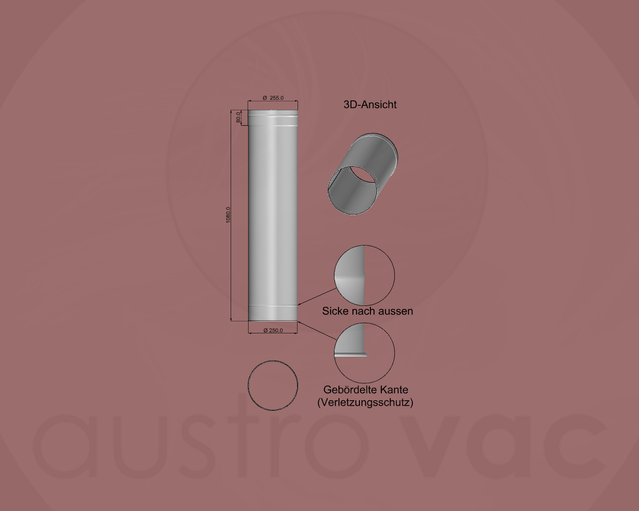 Endrohr 250 mm für einen Edelstahl-Wäscheabwurf