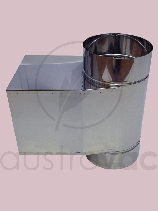 Mit dieser Schurre schaffen Sie den Übergang von einem 250mm Edelstahl-Rohr zu einer Wäscheschacht-Abwurf-Türe mit einem Einwurf von vorne.