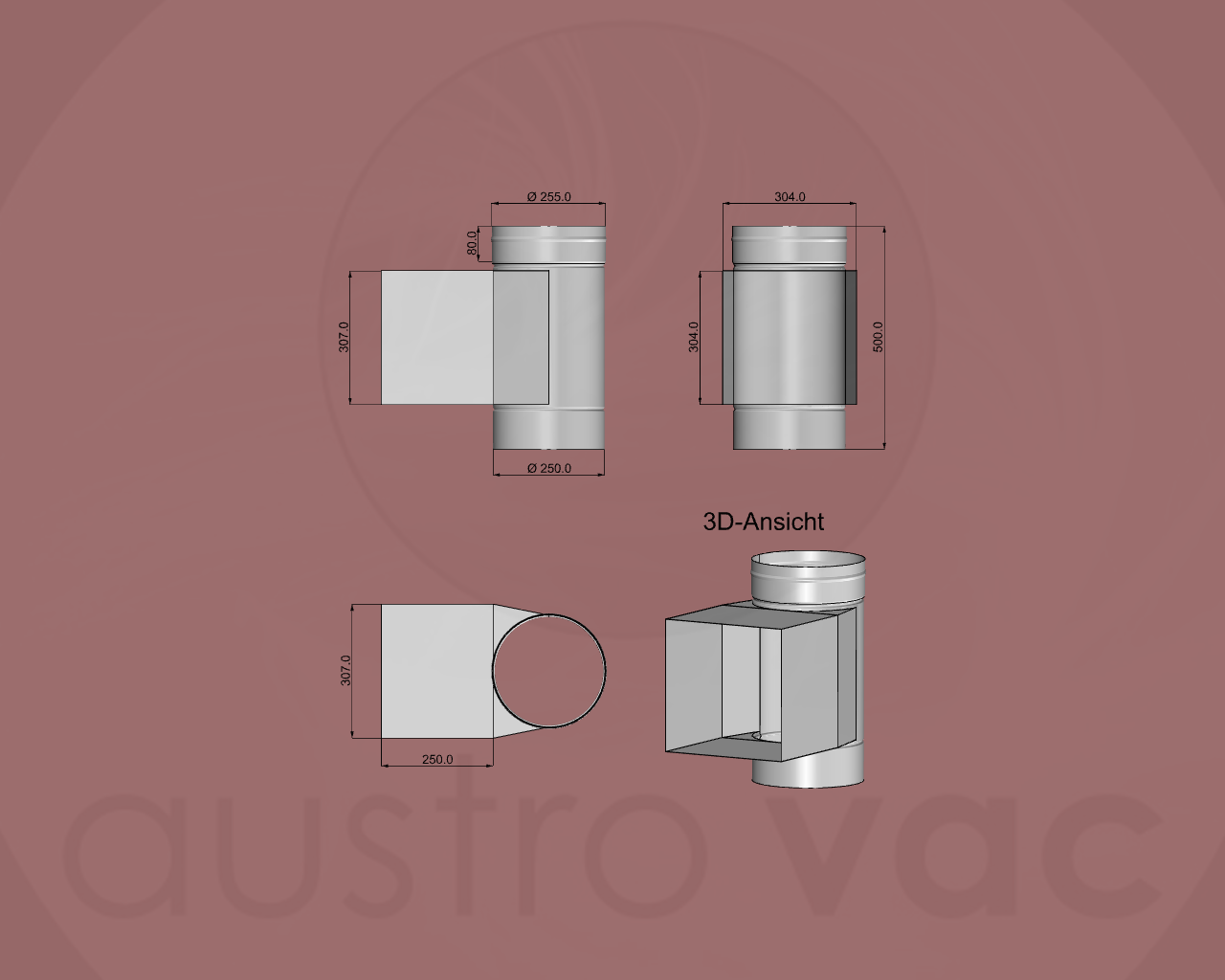 Schurrenrohr 300x300 mm für 250mm Edelstahlrohr