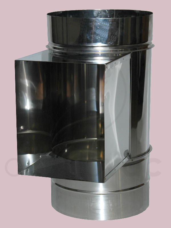 Mit dieser Schurre schaffen Sie den Übergang von einem 300mm Edelstahl-Rohr zu einer Wäscheschacht-Abwurf-Türe mit einem Einwurf von vorne.