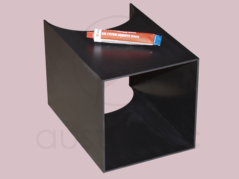 Die Schurre wird mit etwas handwerklichem Geschick mit einem dazu geliefertem PCV-Kleber in das KG-Rohr geklebt und sauber verschliffen