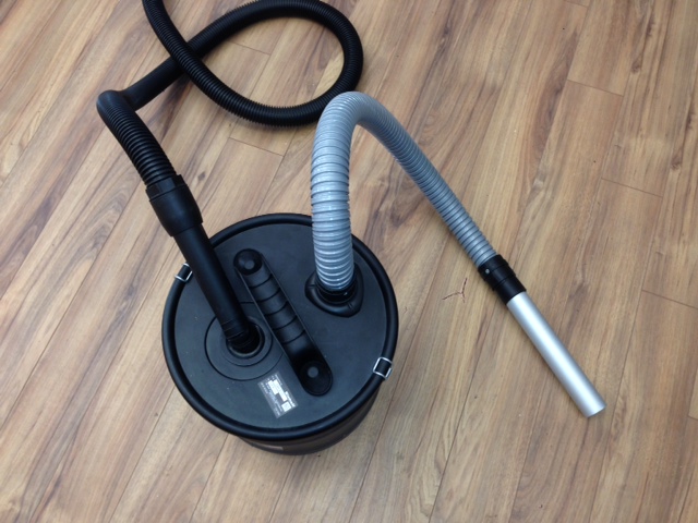 Dieser Ascheabscheider wird mit dem Saugschlauch eines normalen Haushalts-Staubsaugers oder einer Staubsaugeranlage verbunden. Die Saugkraft kommt vom Staubsauger, der Schmutz bleibt aber im Vorabscheider.