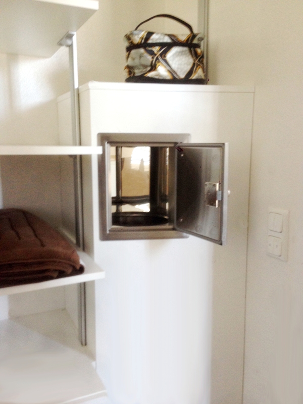 Sehr flach an der Wand anliegend mit innenliegender - abgedichteter Türe.