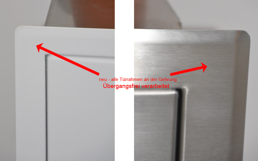 Die Türe wird ab sofort immer ohne sichtbarer Verbindung der Rahmenecken ausgeliefert, was die Optik enorm aufwertet