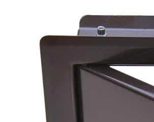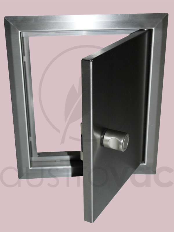 Die Türe hat einen besonders kleinen Rahmen, für alle Kunden, bei denen das Schachtrohr sehr nahe an einer Wand ist und der Rahmen der Türe sonst seitlich an der Wand anstehen würde.
