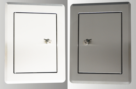 Sonder-Türe Metall Weiß u. Edelstahl für Schurren 24x35cm, doppelwandig mit Dichtung