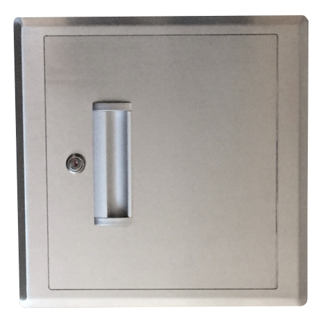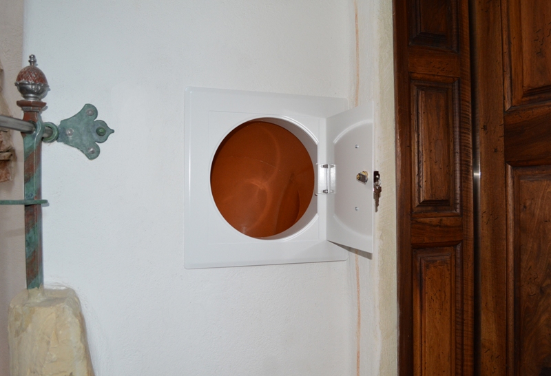 Grundsätzlich ist die Türe eine einwandige Metalltüre mit quadratischem Rahmen mit qadratischer Türe und dahinter der runde Anschluß für das Rohr- und Einwurfgröße ca. 30cm