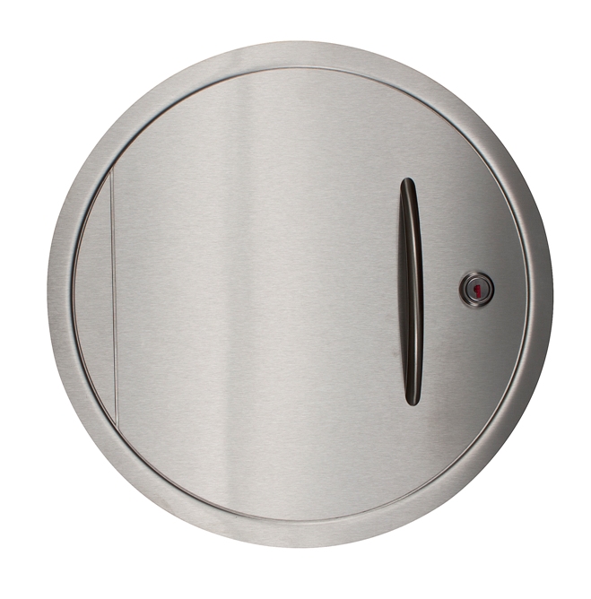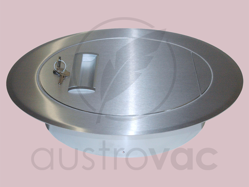 Einwurf-Türe in Edelstahl, Rahmenmaß außen 400mm Durchmesser (oder 340mm - mit Kleinrahmen)