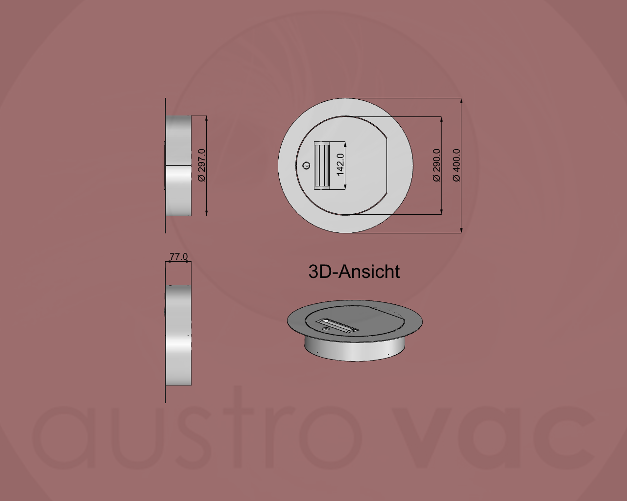 Wird die Türe in ein Kanalrohr mit Muffe gesetzt, so kann die Türe mit einem Ausgleichsring zentriert werden. (weil der runde Kragen hinten an der Türe passt immer in ein KG-300 Rohr ohne Muffe oder in ein Edelstahlrohr)