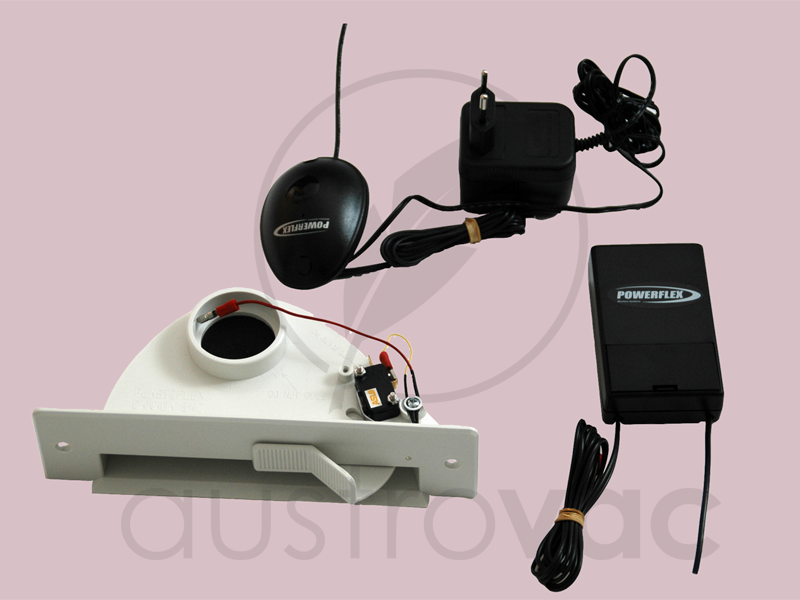Der Kehrdosen-Sender an der Kehrdose hat eine Batterie die man gelegentlich einmal austauschen muß und daher sollte der Sockel der Küche nicht fix montiert werden sondern nur mit Halteklips. Man kann den Sender natürlich auch in den Küchenschrank über der Kehrdose verlagern und mit dem Kabel an die Kehrdose darunter anschließen.