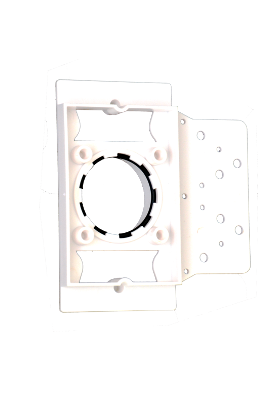 Dieser Montagerahmen hat entweder zwei Befestigungslöcher oder aber, so wie bei unserem Universalrahmen gleich 6 Montagelöcher zur Aufnahme der entsprechenden Saugdose.