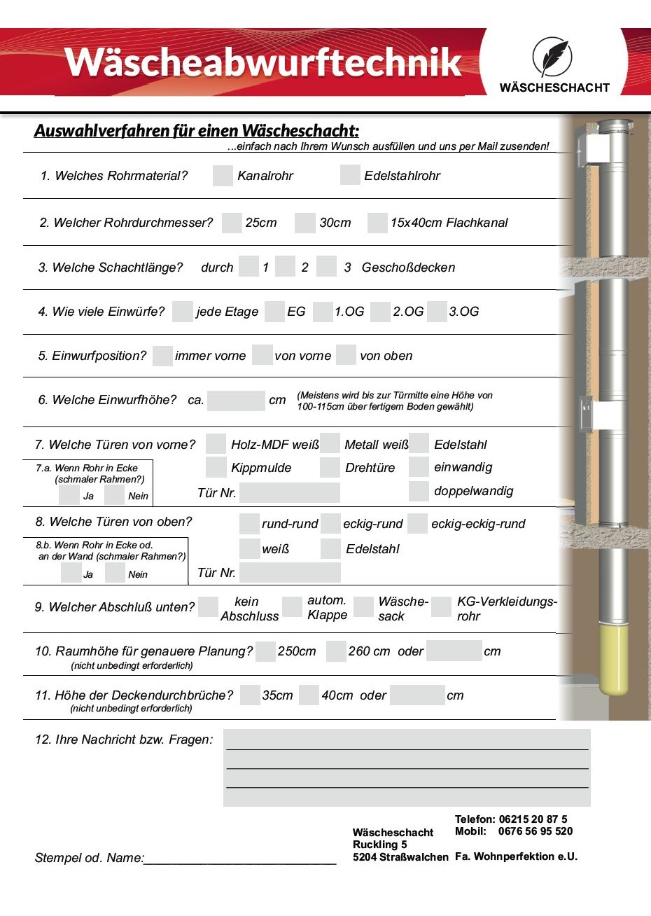 Anbei finden Sie unter den Detail-Bildern noch Informationen zu möglichen Sonderanfertigungen und eine Auswahlhilfe um Ihren Wäscheschacht nach Ihren Wünschen zusammen zu stellen.