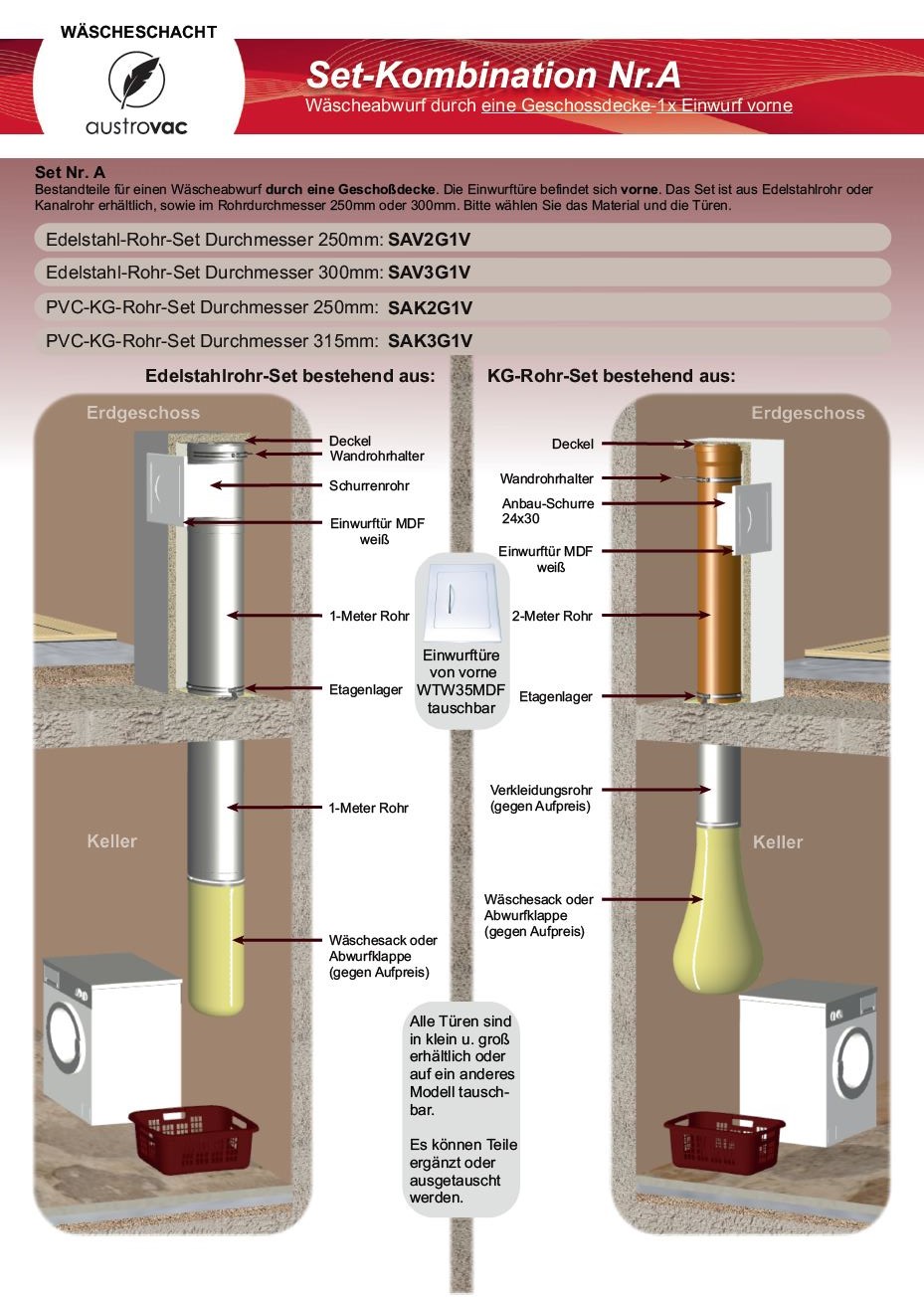 Dieses Set enthält die Bestandteile für einen Wäscheschacht durch eine Geschoßdecke inkl. 1x Türe weiß.